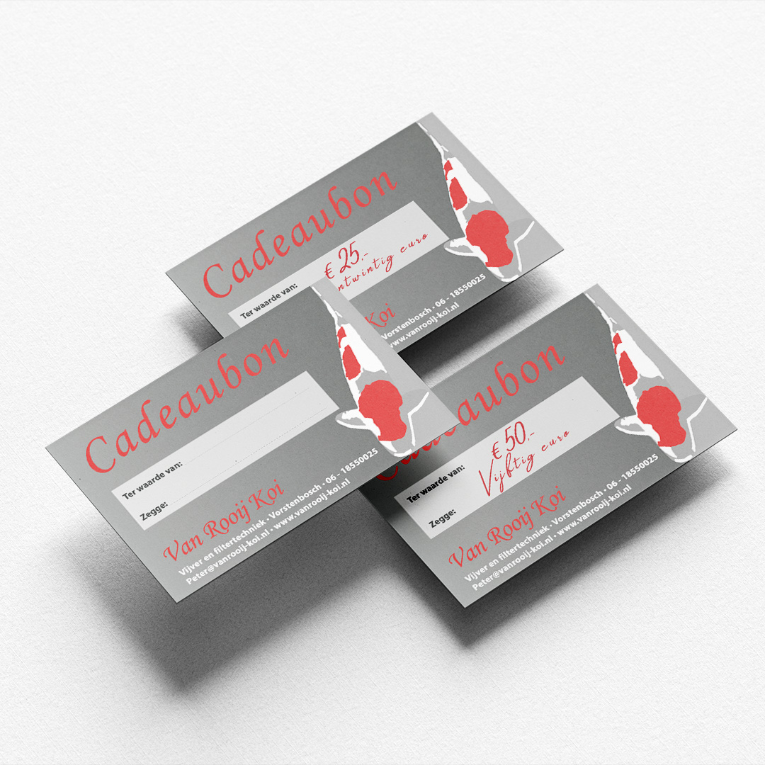 Op zoek naar een origineel cadeau voor een koi- of vijverliefhebber? Met de Van Rooij Koi Cadeaukaart geef je altijd het juiste geschenk. De ontvanger kan de cadeaukaart vrij besteden in zowel onze winkel als webshop, en zelf kiezen uit ons complete assortiment: van hoogwaardige koi en voer tot vijverfilters, UV-C systemen en accessoires.