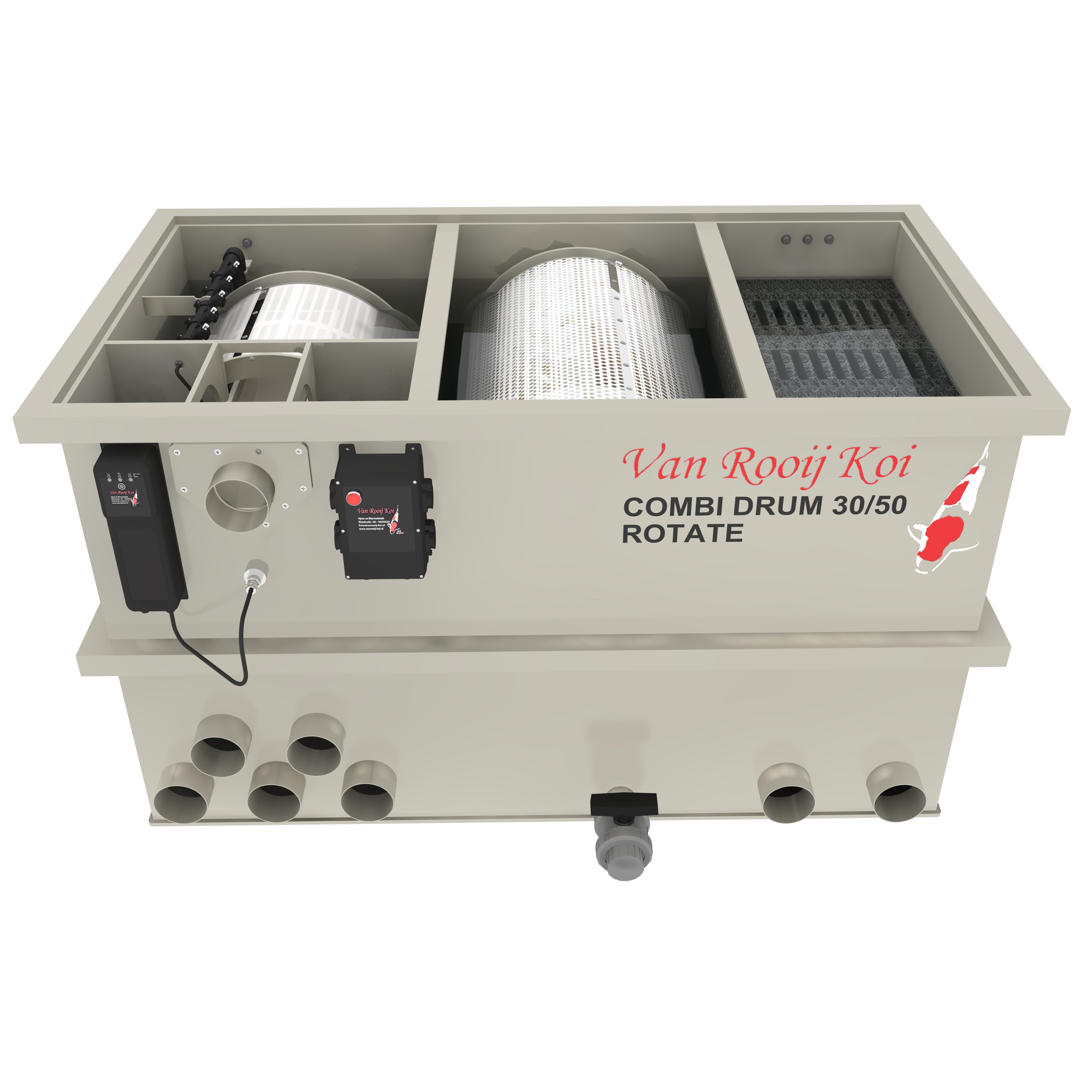 Bevorder de helderheid en kwaliteit van uw vijverwater met de Combi Drum 30/50 ROTATE van Filtreau Excellent.