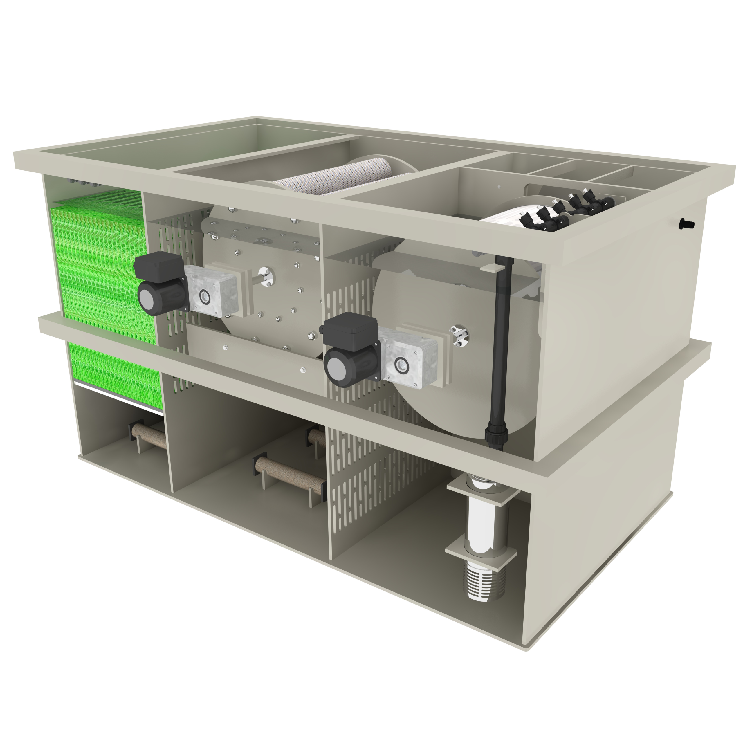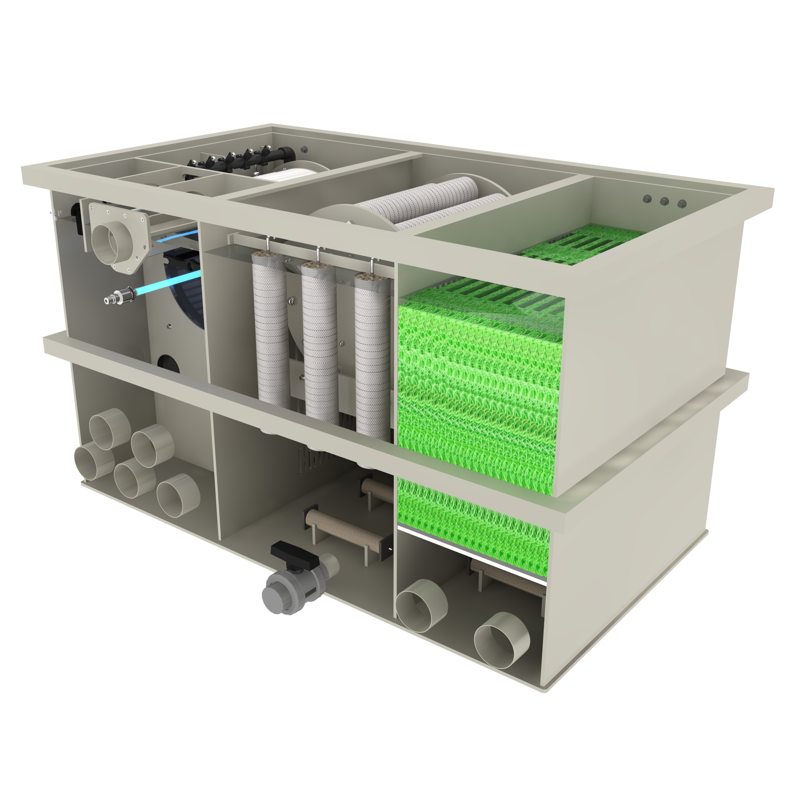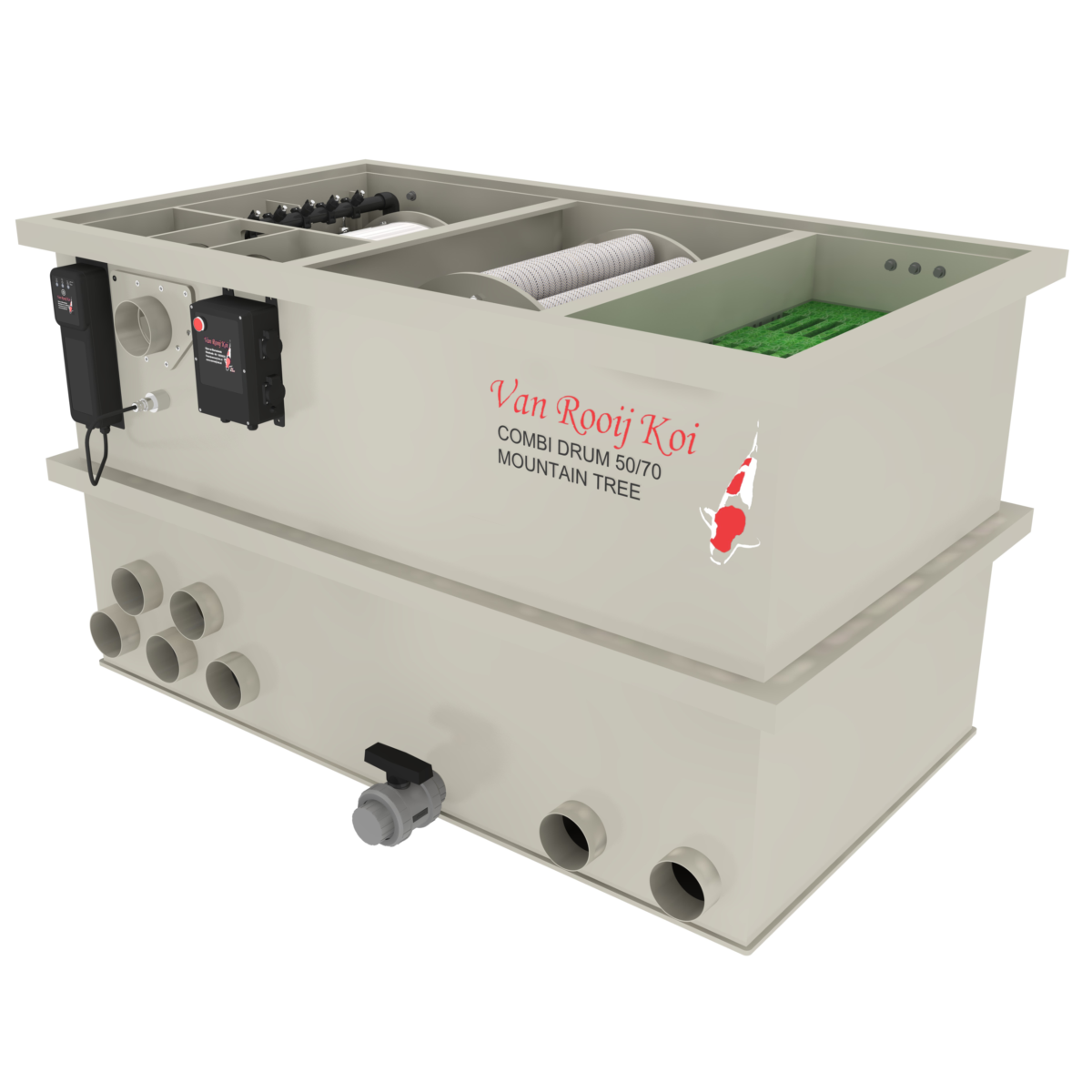 De COMBI DRUM 50/70 van Mountain Tree is een robuuste en efficiënte combifilter die moeiteloos vijvers tot wel 70 m³ aan kan. Dit model is uitgerust met een geavanceerde volautomatische trommelfilter gecombineerd met een royale biologische filterkamer, waardoor zowel grove als fijne vervuiling effectief wordt aangepakt.