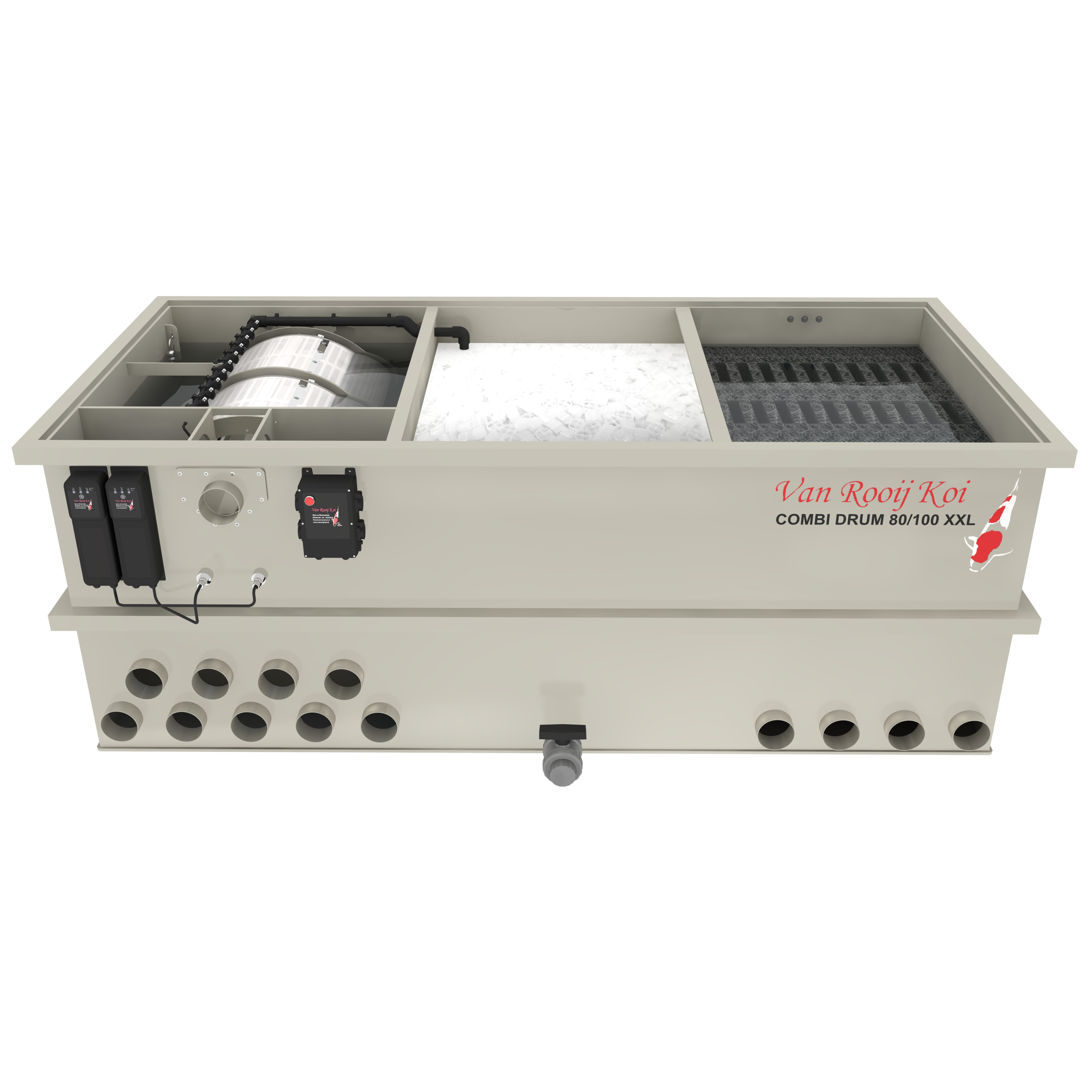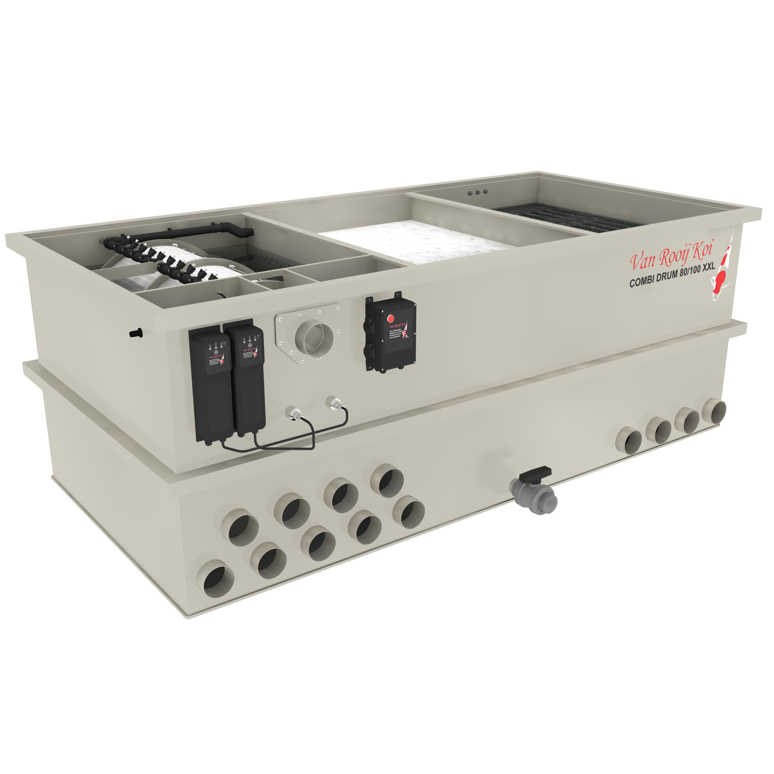 Bevorder de helderheid en kwaliteit van uw vijverwater met de Combi Drum 80/100 XXL van Filtreau Excellent.
